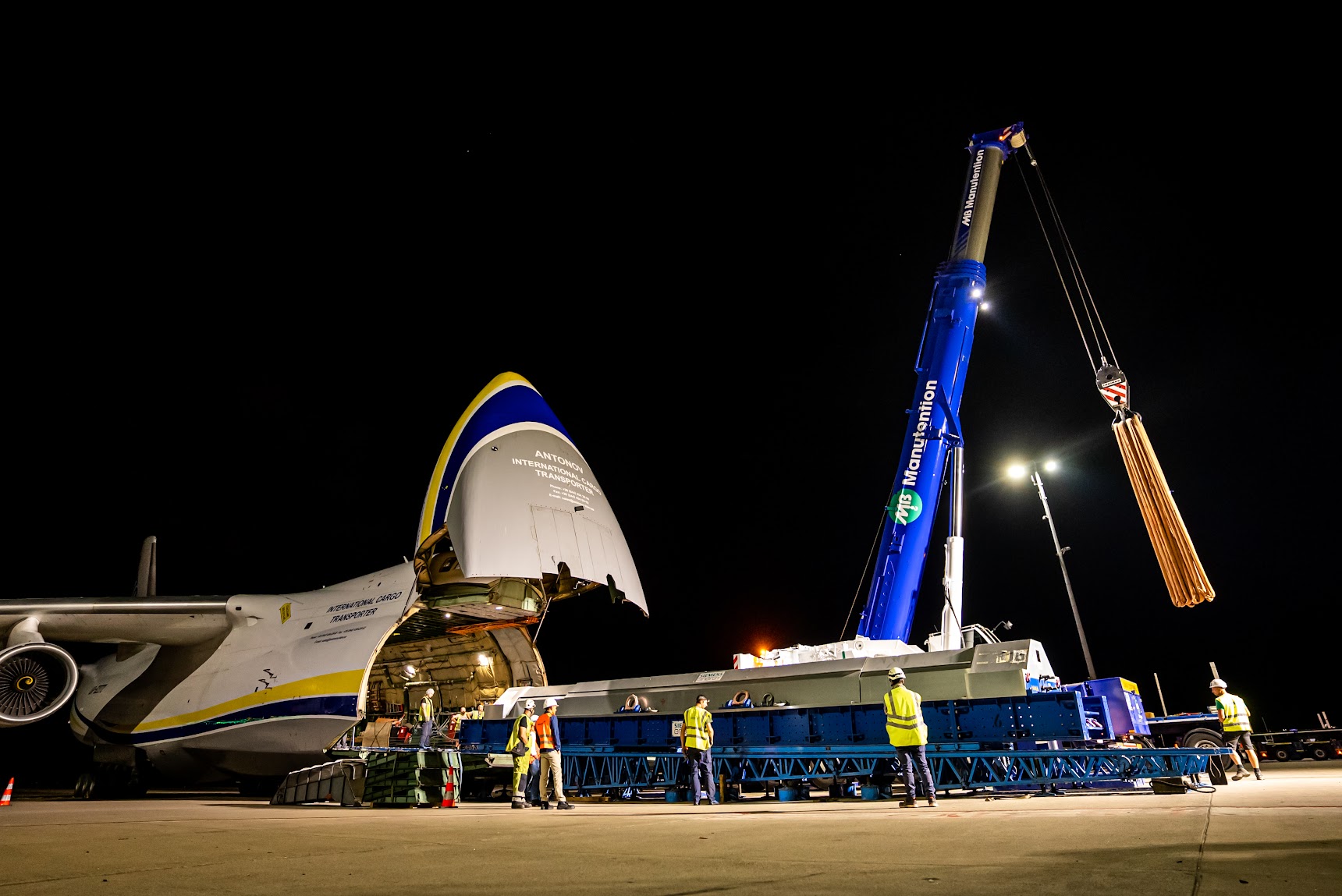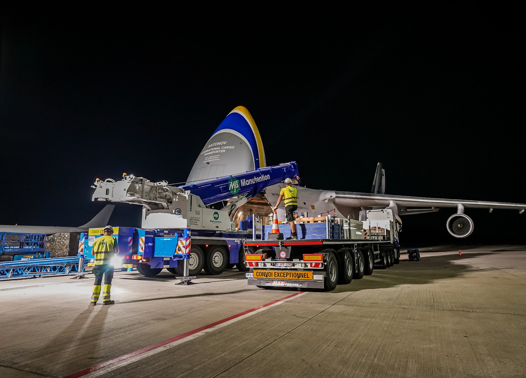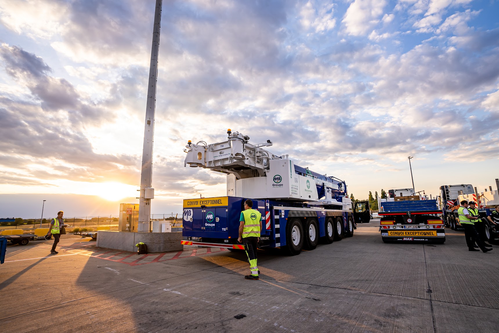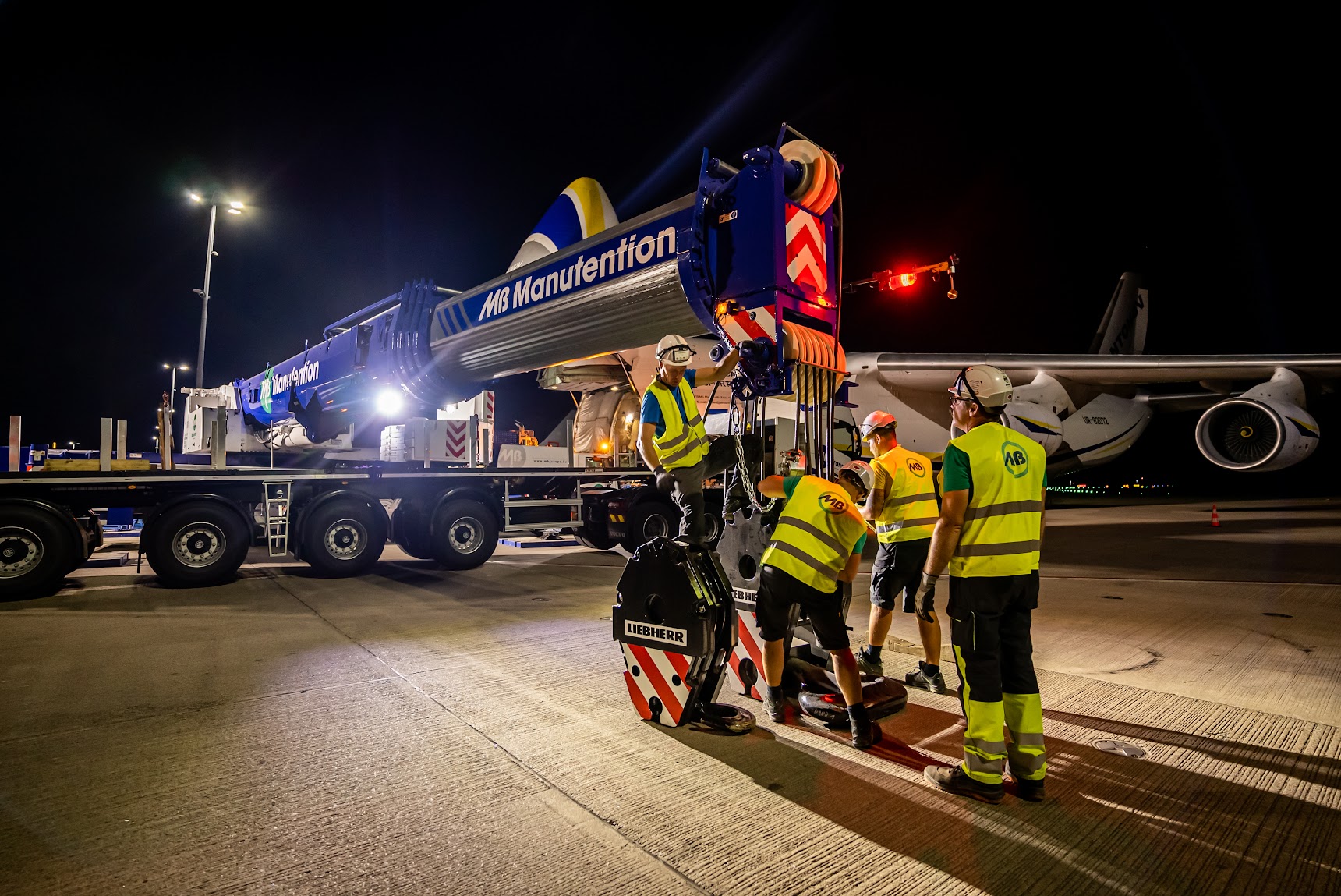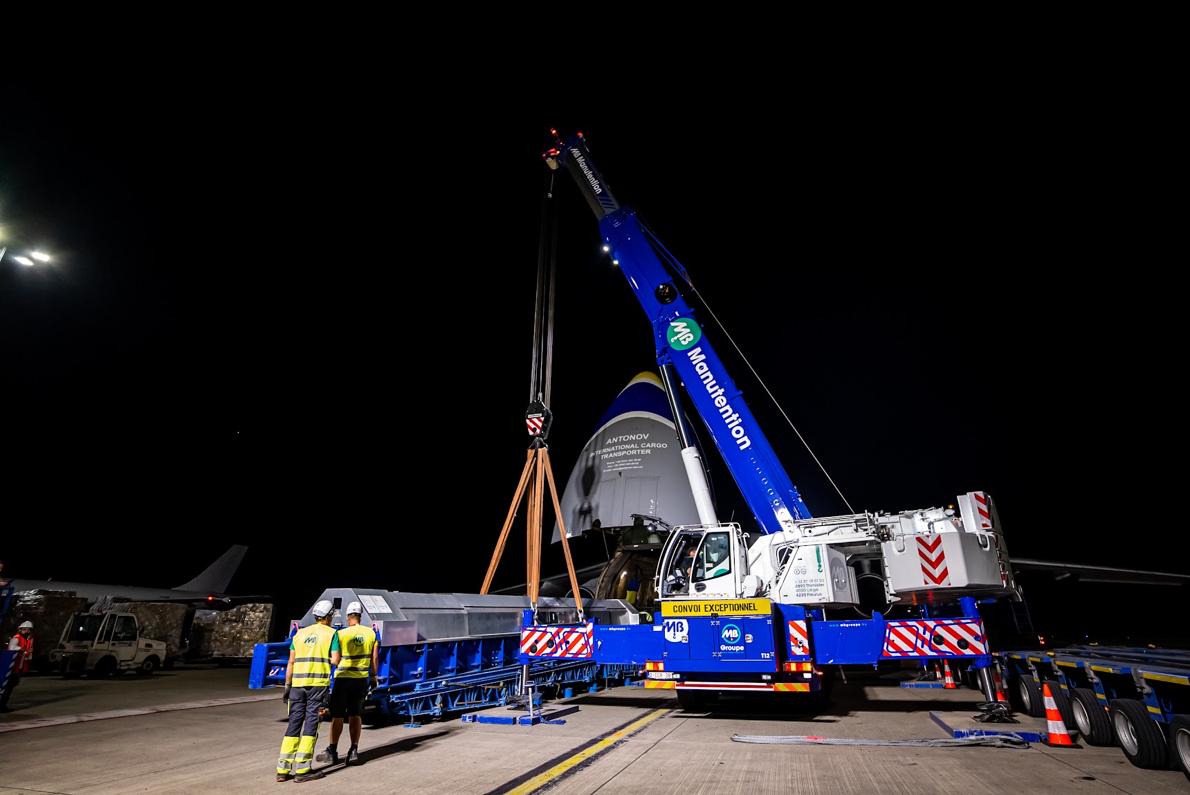 Challenge accepté pour MB Groupe et Challenge Handling ! Épaulées par notre NEW T12 (Liebherr LTM 1250-5.1), la grue télescopique à cinq essieux la plus puissante au monde, nos équipes n’ont eu aucun mal à procéder au levage d’un rotor (d’un poids de 94T ) sur le site de Challenge Handling à Liege Airport.